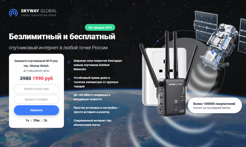 Оцените уровень подачи. А всего-то безлимитный, бесплатный, да еще и спутниковый Интернет в любой точке России. Да еще и менее чем за 2000 рублей - брать, немедленно брать! Тем более что в качестве "волшебного устройства" там изображен довольно мощный усилитель WiFi WAVLINK AC1200, который на Ali стоит даже немного дороже.
