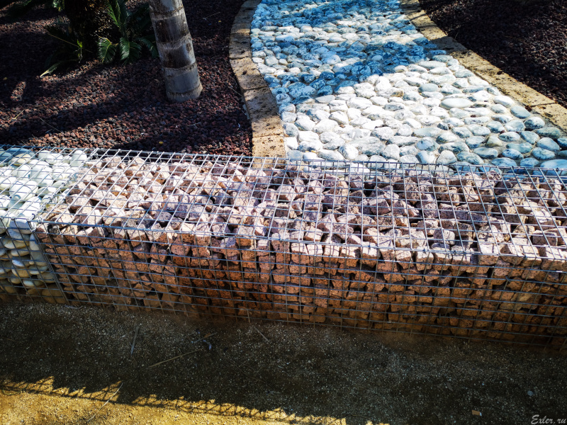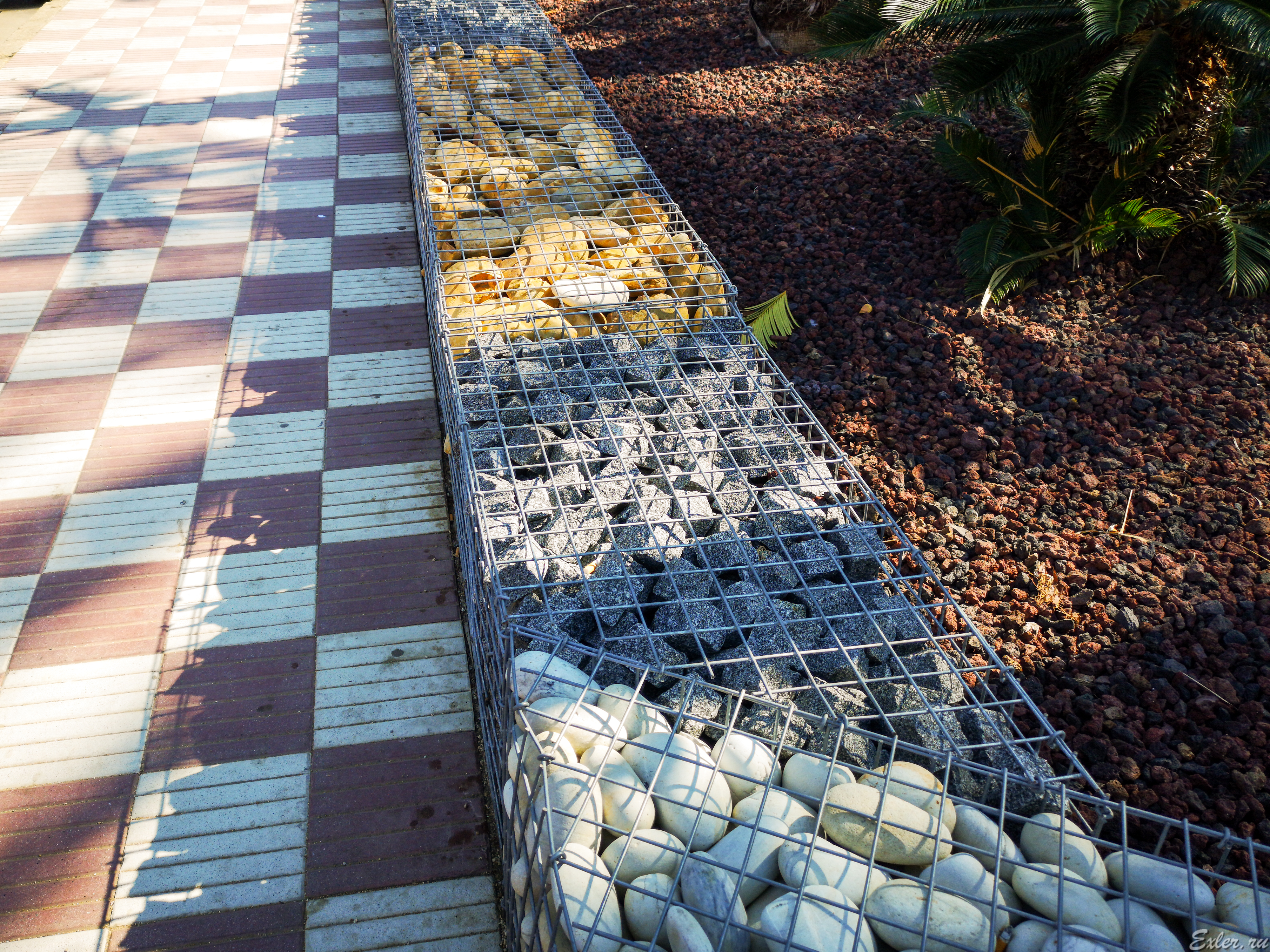 И вдруг заметил, что ограждения в парке сделаны очень интересно. Это такие железные клетки, набитые тщательно подобранными камнями.