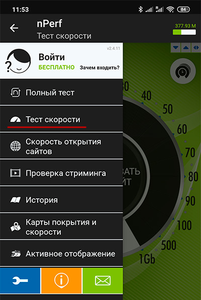 Только в мобильном приложении выбирайте не "Полный тест", а "Тест скорости", чтобы долго не ждать.
