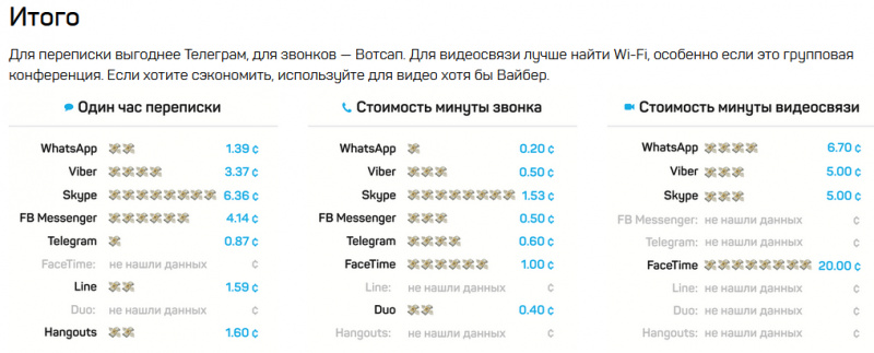 Посмотрим, сколько евроцентов (¢) будет стоить переписка с фото и минута видеозвонка в разных мессенджерах.