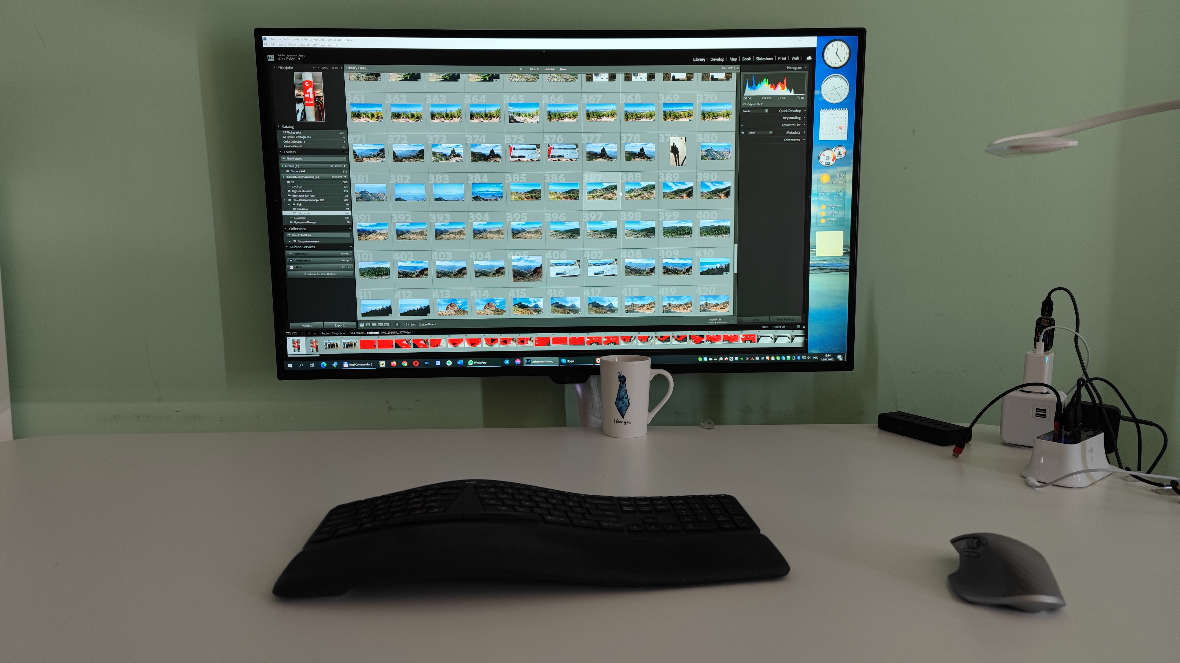По фото масштаб, конечно, не очень понятен, даже когда рядом чашка стоит. Все-таки взял пока вот эту модель: LG 43UN700-B. 43", 4К (3840x2160), IPS, частота обновления 60 Гц, время отклика 8 мс. Матовый, имеет антибликовое покрытие. Посмотрю, как себя поведет. Я его могу вернуть до 9 февраля, если что. Из коробки был откалиброван откровенно паршиво (что и писали в обзорах), однако у меня калибратор есть, и он надежды оправдал - откалибровал как надо, теперь совсем другое дело: и белый цвет - именно белый, и с остальными цветами вроде все в порядке.