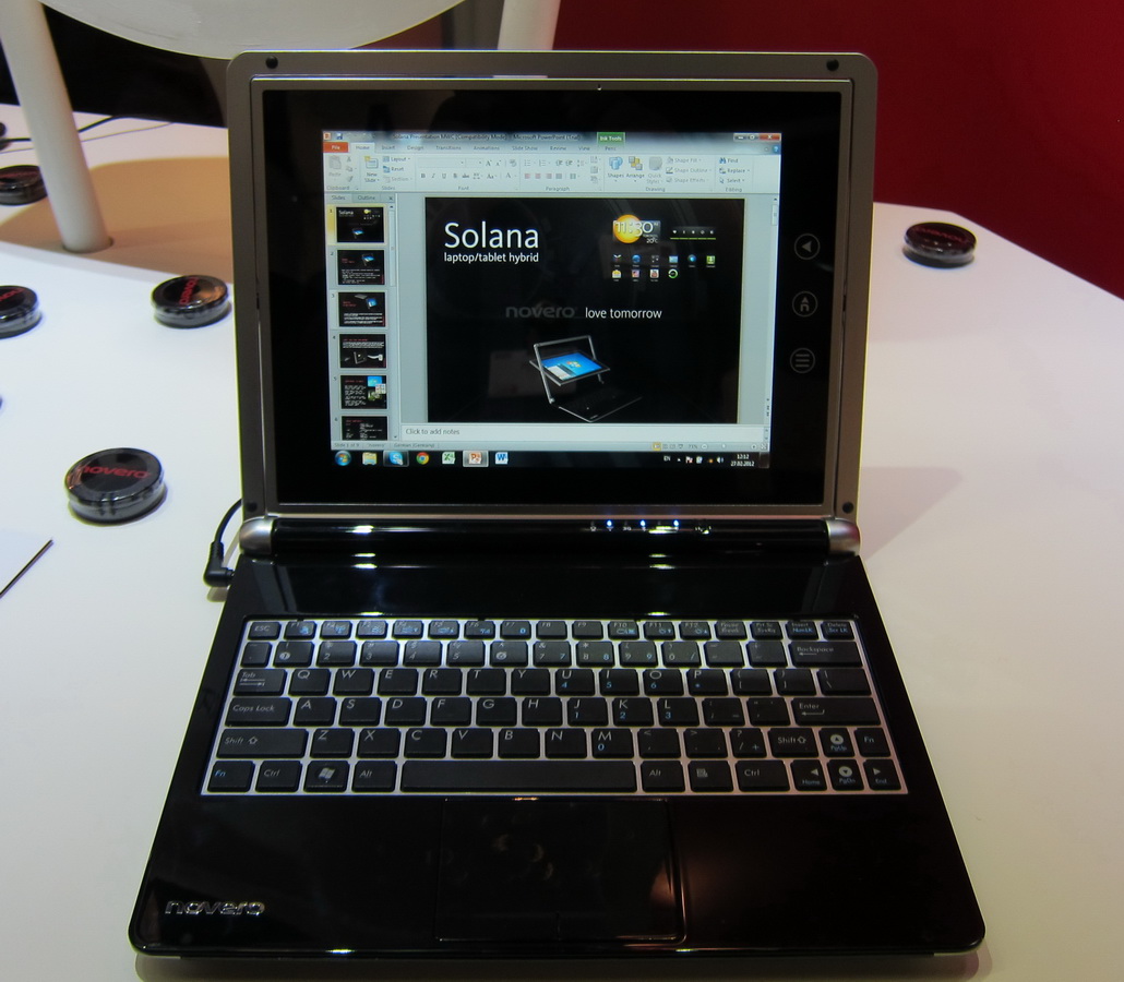 На стенде фирмы Novero был представлен забавный гаджет. На первый взгляд - это обычный ноутбук под Windows 7.
