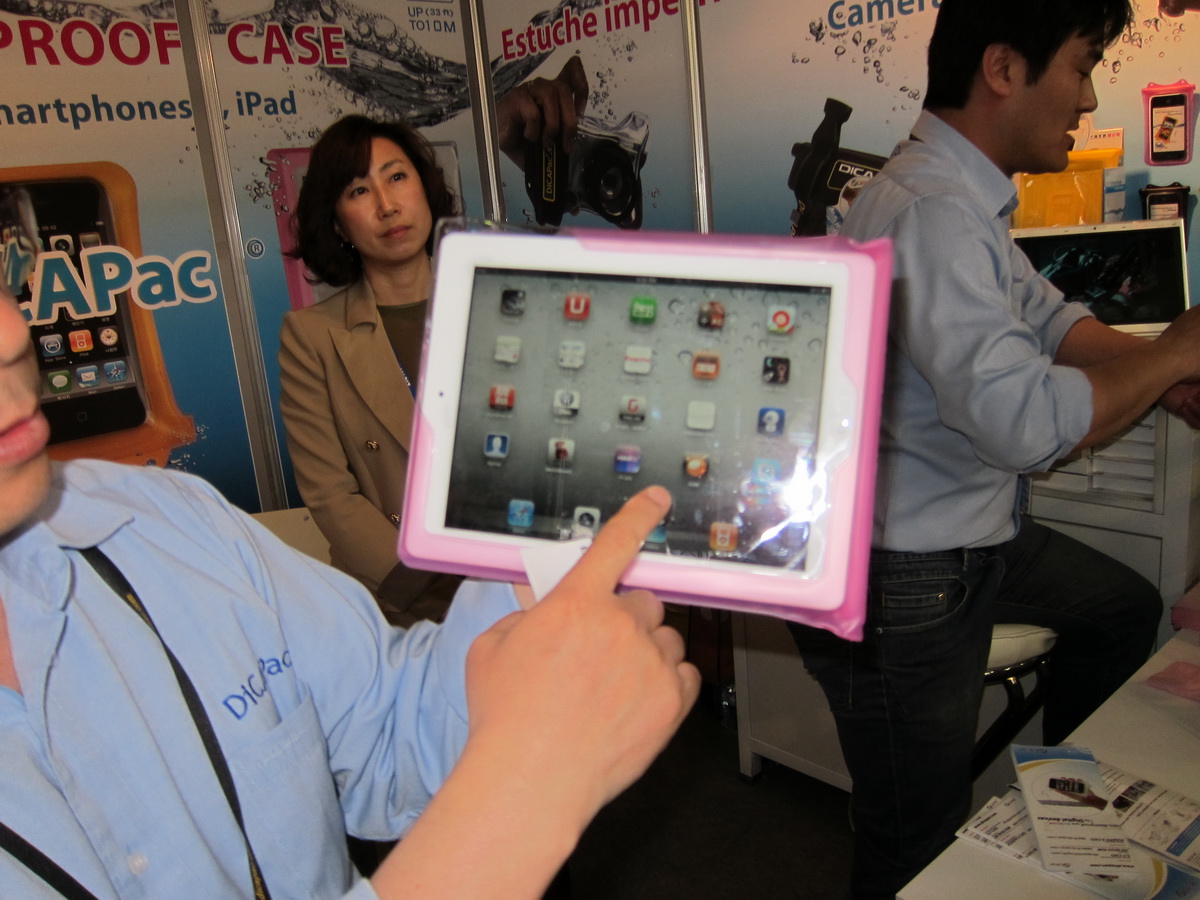 На выставке продемонстрировали две технологии защиты гаджетов от воды. Первая технология - традиционная: фирма DiCAPac представила самые разнообразные защитные чехлы для смартфонов и планшетов.