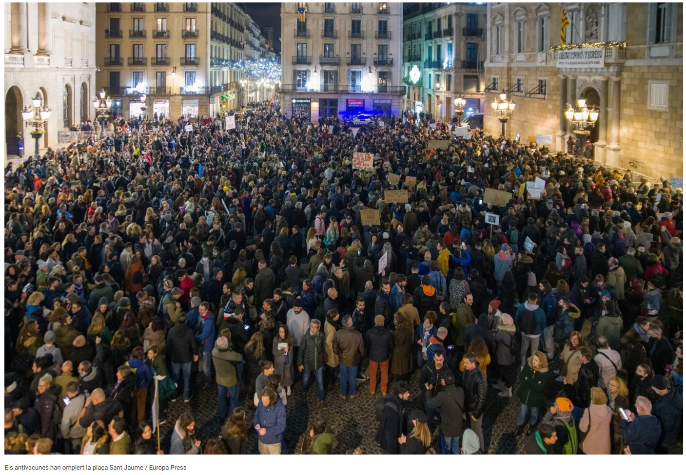 В эти выходные в Барселоне снова были многолюдные протесты против введения ковид-паспортов - "La protesta contra el passaport Covid al centre de Barcelona guanya força".