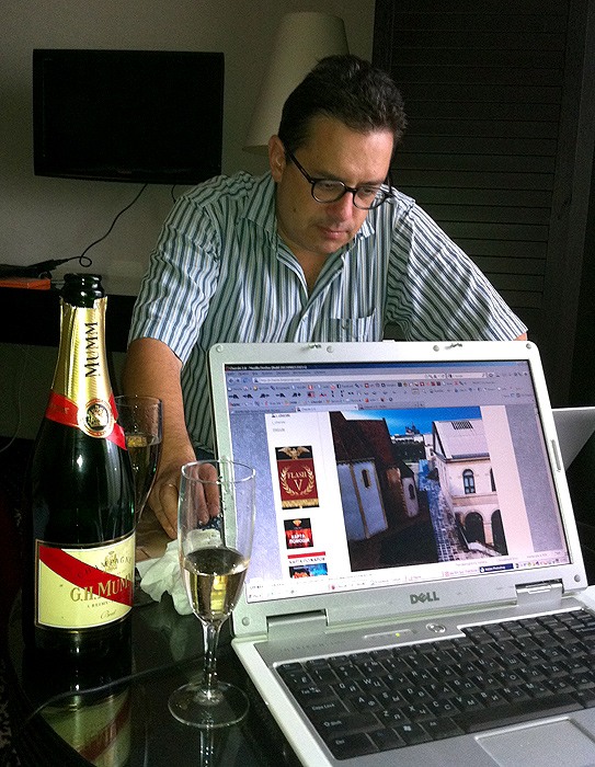 Картина называется "Нелегкие блогерские будни, или Чер-ский с Экслером решили наконец пообщаться не через Интернет". Mumm, кстати, в районе того самого Реймса и производится. И стоит тут копейки - порядка сорока евро. Я просто в Реймсе, как интеллигентный и тонко чувствующий человек, пошел в магазин за бухлом, ну и прикупил.
