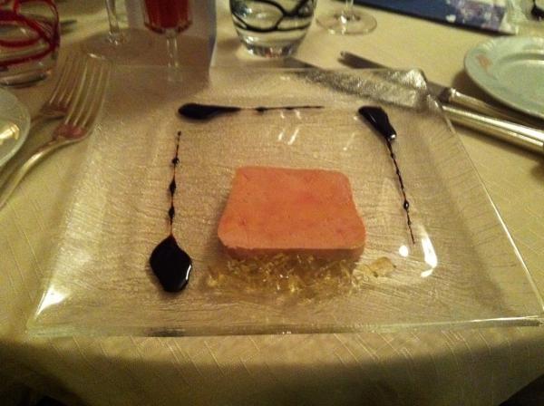 В поездке кормят нас хорошо, грех жаловаться. Водят по всяким крутым ресторанам с haute cuisine - высокой кухней. Это когда долго ждешь, потом приносят тарелку с тележное колесо, на которой шоколадом выписаны какие-то иероглифы, а в самом центре лежит маленький треугольный кусочек какого-то трупика, украшенного, например, васильками. Выглядит красиво, но есть это на самом деле невозможно. Или просто я, как простой деревенский паренек, ни черта не понимаю во всех этих изысках. И фуа-гра - ненавижу. Это я в родной деревне любил фуа-гра, которая тогда называлась "паштет из гусиной печени" - намажешь бывалоча на хлебушек этой фуа-гры - и айда на речку пескариков ловить!