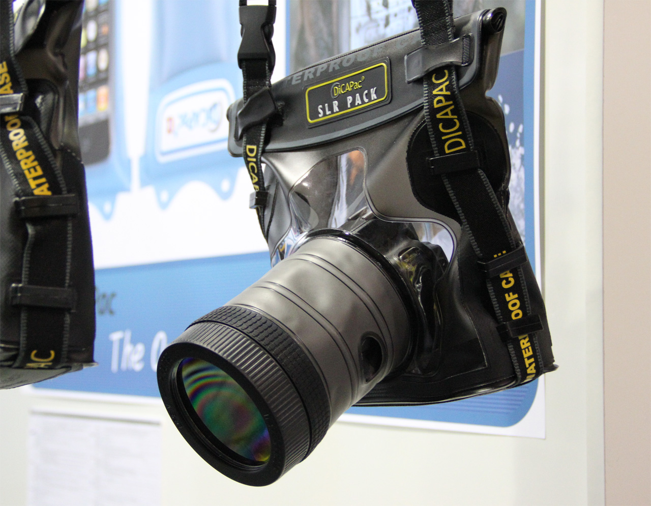 Стенд со всякими вотерпруфчиками, то есть влагонепроницаемыми чехлами. Для фотоаппаратов.