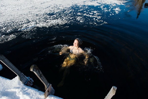 Если вы хотите открыть для себя по-настоящему новые ощущения, попробуйте подледное плавание. Да, это на самом деле плавание в ледяном озере, куда вы буквально прыгаете через небольшую прорубь! Лучше всего делать это сразу после сауны. Звучит слишком экстремально? Однако у вас будет шанс познакомиться со многими финскими бабушками и дедушками, которые уверяют, что обязаны своим здоровьем именно купанию в ледяной воде. Оно оздоровляет и уменьшает хронические боли любого происхождения. Если вам не посчастливится найти прорубь, выйдя из парилки, прыгайте прямиком в снег, от души в нем поваляйтесь и бегом возвращайтесь в целительное тепло сауны!