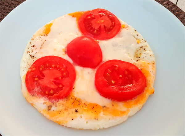 В качестве небольшой иллюстрации - яичница по-северокалейски: два яйца, кусочек сыра, соль, перец, один небольшой помидор, порезанный кружочками. Очень, знаете ли, вкусно.