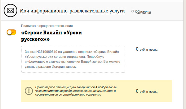 Я, собственно, к тому, что если у вас родители/родственники пользуются этим злогребучим "Билайном" и не умеют работать с личным кабинетом - не поленитесь, зайдите, проверьте и отключите данный сервис (и, возможно, какие-то другие), чтобы они не сосали деньги со счета.