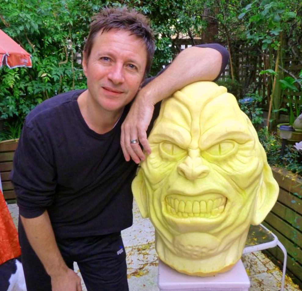 Живет в Канаде человек по имени Клайв Купер - вот сайт его студии. Клайв с помощниками делает совершенно невероятные фигурки из тыкв и арбузов. Вот галерея тыкв, вот галерея арбузов.