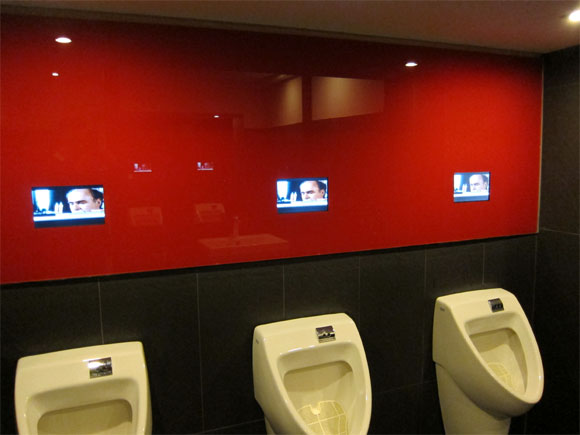 В Штатах над писсуарами есть специальные полочки, на которые очень удобно ставить айпад в обложке - читать новости и так далее.