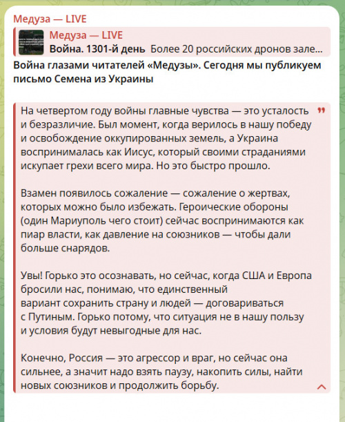 Я правильно понимаю, что у издания "Медуза" - это такая фишка: распространять российскую пропаганду под видом "писем читателей"?