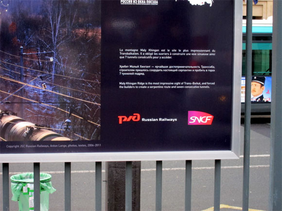 На площади перед железнодорожным вокзалом Парижа во все ограждение - непрерывная реклама Российской железной дороги. Интересно, во сколько им это обошлось. И не лучше бы потратить эти деньги на хотя бы минимальное улучшение этой РЖД.