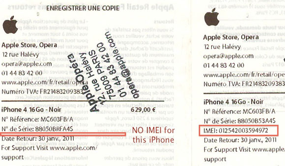 Очень полезная история для тех, кто собрался покупать незалоченный iPhone где-то за границей. Оказывается, если при покупке случайно не считается IMEI, тогда телефон останется конкретно залоченным - автор заметки на эти грабли, к сожалению, и наступил. Так что обязательно проверяйте чек при покупке - там должен быть указан IMEI. Ниже - два чека. В первом IMEI нет - ну и все, этот телефон не работает ни с одной симкой. Саппорт пока ничем не помог.