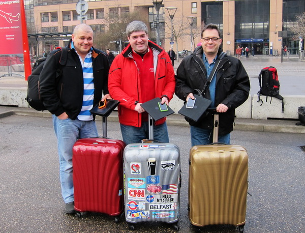 Обещал рассказать, что это за чемоданчики такие, которые вот на этой картинке. Это Samsonite Cosmolite - сверхлегкие, но очень прочные чемоданы. Обычно основная проблема с чемоданами следующая: матерчатые на молниях - легкие, но крайне ненадежные. Кроме того, молнии очень легко открываются и закрываются обычной ручкой или отверткой, так что доблестные работники аэропортов могут попереть из чемодана то, что им понравится. Замок на карабинчики молнии при этом не помогает, так как с замком карабинчики все равно могут ездить туда-сюда.