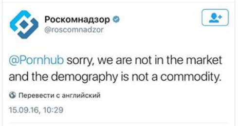 Роскомнадзор решил в ответ опозориться. Интересно, долго думали-то, убогие? То-то в Pornhub сейчас пацаны веселятся.