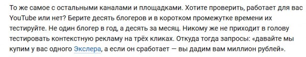 Колонка Елены Торшиной для VC.ru - "Не обращайтесь к блогерам, пока не закрыта дыра в SEO и контексте".