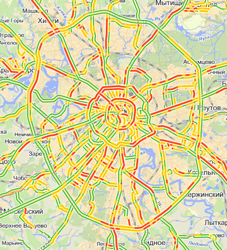 Вот теперь видно, что народ вернулся из традиционного новогоднего запоя. На прошлой рабочей неделе в это время было балла три. А сейчас Москва традиционно встала наглухо - народ выехал на работу. Так он там, на работе, и простоит до конца дня. Потому что еще в колокола не начали бить. Еще не понятно, куда ехать.