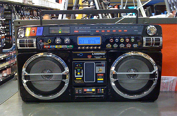 В Штатах увидел весьма креативный бумбокс. Кассеты отцвели, CD уже тоже отходят. Теперь в бумбокс просто вставляете iPhone или iPod Touch - и в компании любых гопников сойдете за своего. На плече бандура стоит прекрасно, я проверял.