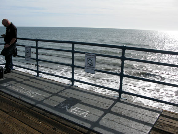 Курильщикам в Штатах приходится очень тяжко. (Оно и правильно.) Здоровенный пирс на побережье Санта-Моники - на фото его конечная часть.