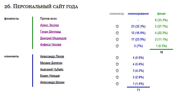 На конкурсе "РОTOP-2010". Причем совершенно случайно узнал, что мы с Медведевым там участвовали. Почему нам об этом не сообщили, интересно?