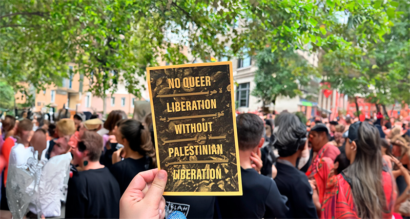 Они также раскидывали листовки с текстом: "Не может быть освобождения квиров без освобождения палестинцев".