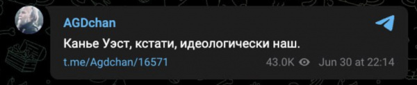 А вот философ-разговорник Дугин - наоборот заявил, что Уэст как раз конкретно идиологически ихний, такой же фашик. Что, конечно, святая правда.