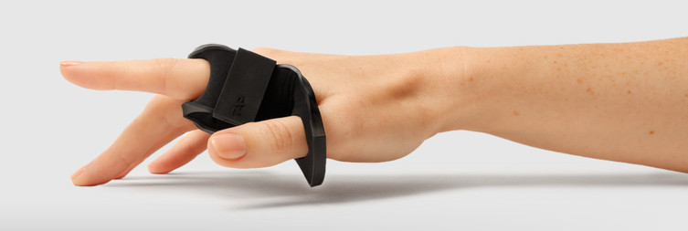 Придумали новый тип беспроводной клавиатуры под названием Tap (сайт проекта). Внешне устройство похоже на кастет, только выполненный из пластика. (Будут выпускаться три модели, различающиеся размерами отверстий для пальцев.)