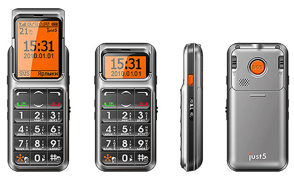 Я уже писал про один бабушкофон - Just 5 CP09. Сейчас привезли поиграться новую модельку - Just 5 CP11. В основном, отличается наличием выдвигающегося дисплея, на котором в выдвинутом состоянии помещается до 8 строк. А, ну еще и температуру показывает за бортом телефона.