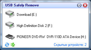 Но программа делает далеко не только это. У нее там немало полезных функций: быстрое и удобное безопасное извлечение любых hot-plug устройств, переподключение отключенного устройства, деактивация, безопасное извлечение отдельных карт памяти, а не всего кардридера, сокрытие пустых слотов кардридера, запрет для Windows назначать слотам определенные буквы и так далее.