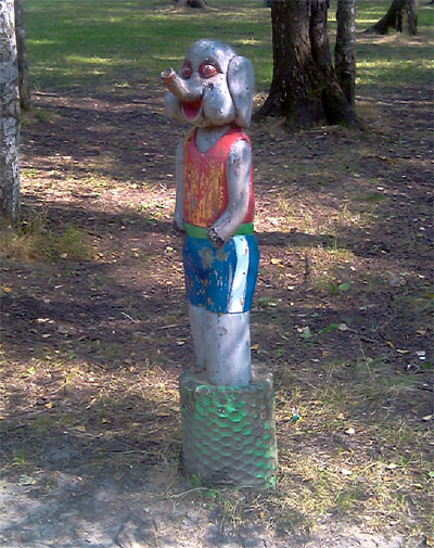 Вообще нелегко пришлось пареньку, судя по всему. Красные выпученные глазки, огромные ушки, вместо носа - страшно сказать что, у ручек обрублены кисти, ножки обрублены по коленочки. Но зато в красной маеечке и волейбольных трусах, как завещал лучший друг всех физкультурников.