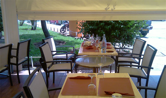 Здесь, на Коста Брава, произошел прямо-таки анекдотический случай. Пришли втроем в ресторанчик. Сели вот за этот столик на улице - тот, на котором бутылки стоят. Больше за столиками никого не было. Я сидел на дальнем стуле слева - на котором висит сумка. Сумку я именно так и повесил, как она висит на фото. Позади никого нет, со стороны клумбы вообще никто не может зайти, напротив меня сидит испанский друг, справа от меня сидит еще один человек. Под конец обеда, когда я полез в сумуу за кошельком, вдруг увидел, что это не моя сумка. Ее подменили - на какую-то другую наплечную сумку - в ней ничего не было.