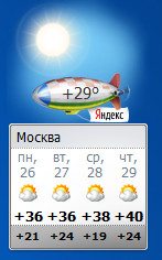 Обнаружил, что "Яндекс" выпустил очень симпатичный погодный гаджет под Vista/W7- Яндекс.Погода. Смотрится намного лучше чем гисметеовский. Да и данные более соответствуют действительности, "Гисметео" вообще давно какую-то фигню городит.