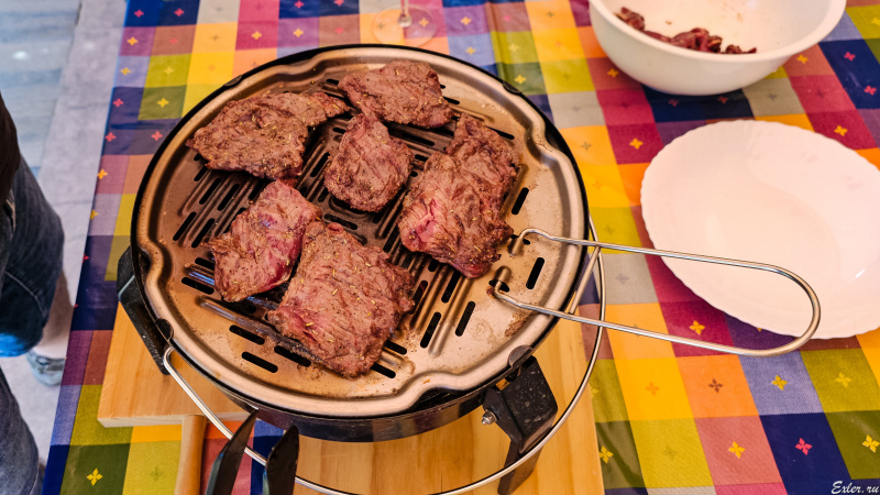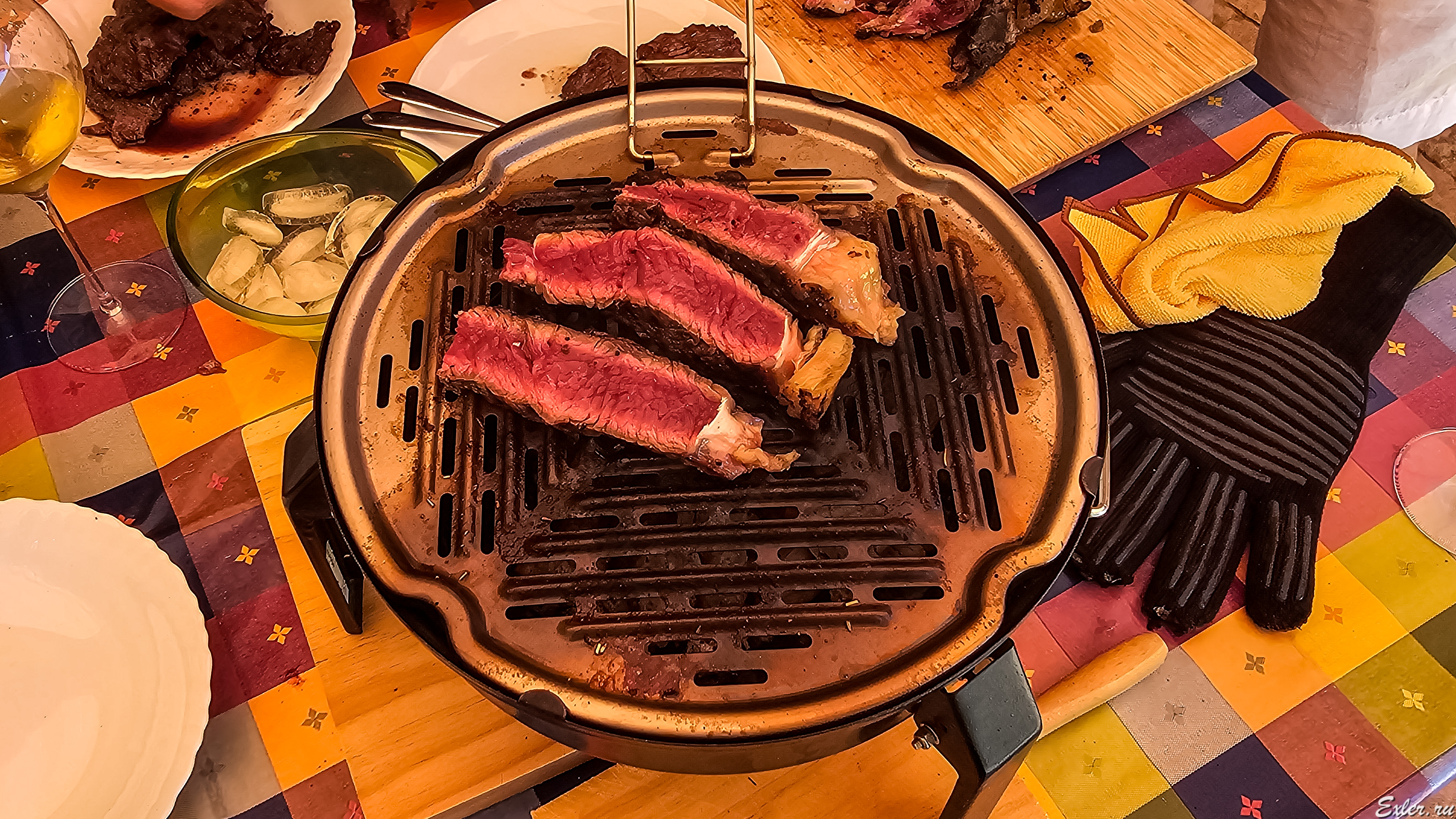 Первым делом мы на ней пожарили энтранью - на закуску. Минута-две на стороне - и все.