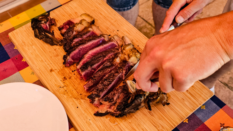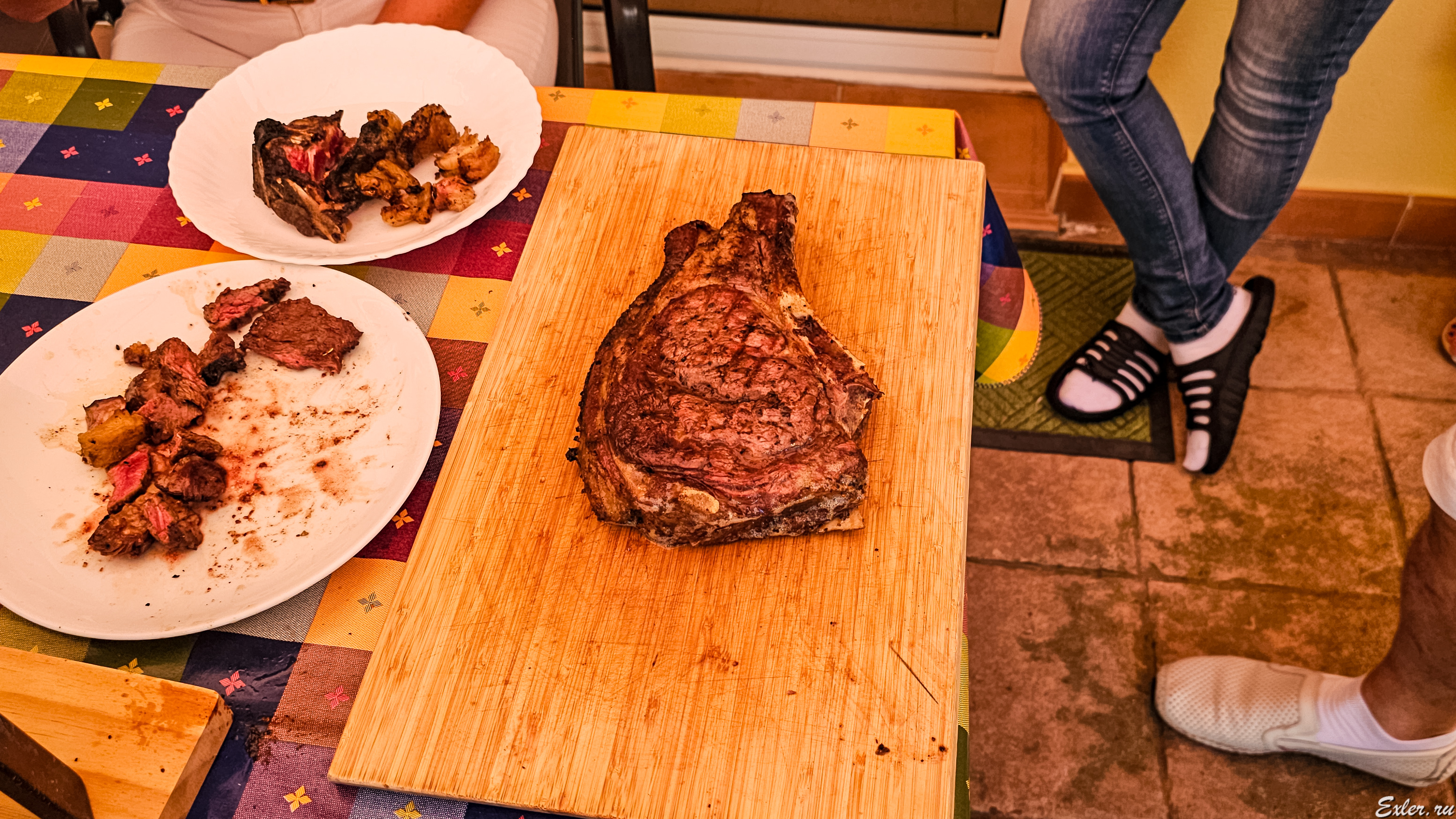 Друг Серхио принес еще один стейк - из хорошо выдержанного мяса. Там по цвету жира видно, что кусок выдерживали дней 30 в специальной камере.