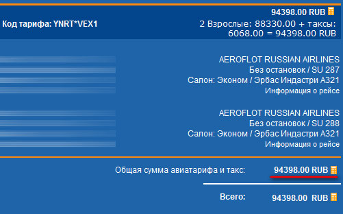 Антон Борисович совершенно справедливо, хотя и не вполне цензурно, пишет о компании "Аэрофлот", которая за билеты во Францию и обратно выкатила на двоих взрослых и ребенка 85 тысяч рублей. Подпишусь там под каждым словом. Потому что я как раз недавно выяснял цены на билеты туда-обратно в Барселону, и мне выкатили вот такой вполне экономный тариф (это еще на двоих взрослых, без ребенка).