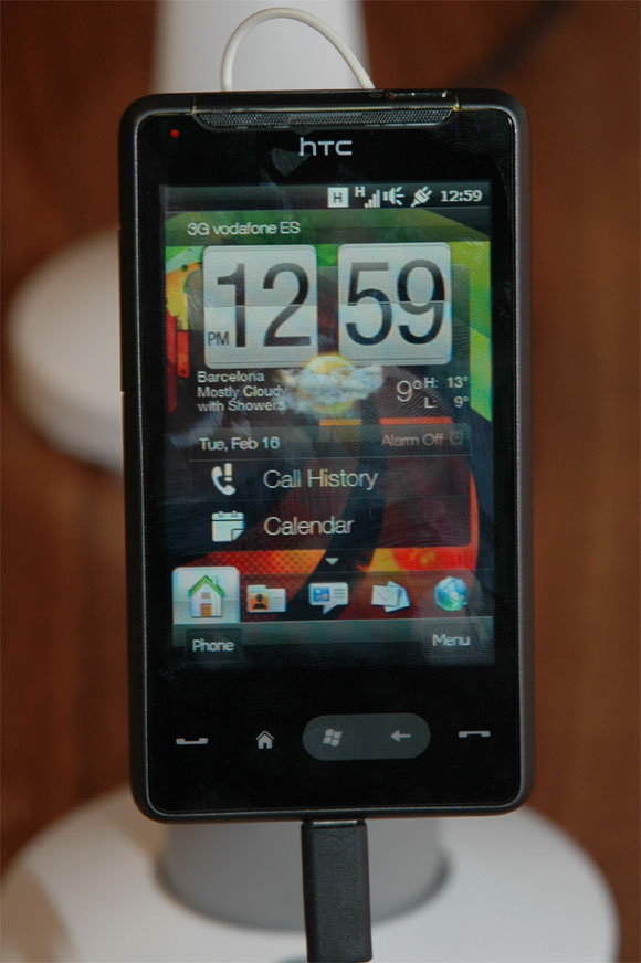 На стенде HTC показали интересную новинку - HTC HD mini. Это типа как уменьшенный HD2 - для тех, кто считает, что коммуникатору не нужен большой экран. Но тут и экран поменьше (3,2 дюйма) и дым пожиже - 600 Mhz процессор, разрешение экрана 320х480, ну и так далее. То есть машинка, конечно, интересная (хоть экран емкостной - уже хорошо), но от HD2 заметно отличается.