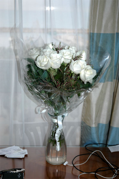 Прихожу вчера вечером в номер - на столе стоит ваза с шикарными белыми розами. Вот эта.