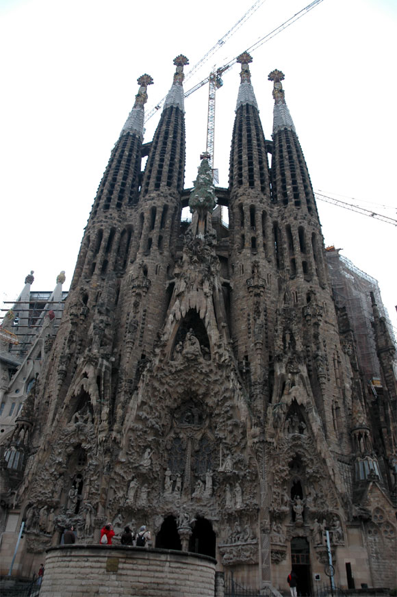 Я знал, что Гауди - он человек совершенно удивительный, фактически второй Леонардо - то есть какой-то марсианин. Sagrada Familia - это совершенно марсианская постройка. Причем ее строят уже 128 лет - с 1882 года. Просто Гауди сказал, что никакого государственного финансирования, так что должны строить только на пожертвования прихожан. Да и то - там куча ограничений. Поэтому самая высокая церковь в мире (выше даже Собора святого Петра в Риме) строится до сих пор. И еще непонятно сколько будет строиться. Но это произведение нечеловеческого разума. Это что-то невероятное! (Погода была паршивая, но все равно видно хорошо.)