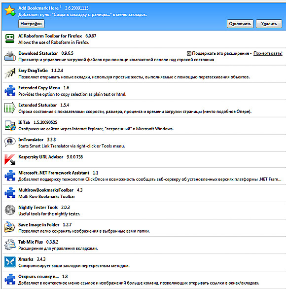 Неоднократно спрашивали, какие у меня в FireFox установлены расширения. Вот эти. По названиям должно быть все понятно, если что не ясно - спрашивайте.