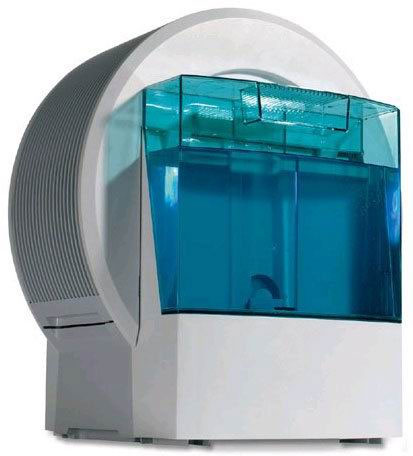 Это увлажнитель и одновременно очиститель воздуха. Испаряет воду со специальных лопастей, работает очень тихо (есть также ночной режим, при котором устройство становится практически бесшумным), за сутки испаряет пару емкостей - то есть восемь литров. И всем этот увлажнитель хорош, но уж больно громоздок, да и стоит не по-детски, несмотря на простоту конструкции - я его покупал за десять тысяч. (Сейчас вроде можно найти за шесть.)