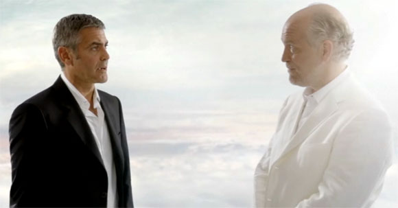 Реклама кофемашин с Клуни и Малковичем (англ. с русскими субтитрами). Вирусняк, конечно, но уж больно хорошо сделано. Беседа про продюсеров в раю - просто класс. К тому же там три варианта концовки - на ваш выбор.