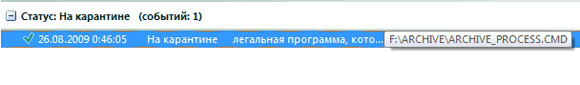 Внутри пакетника - команды архивирования и копирования, более ничего. По ссылке на Virlist, по данным которого файл считается подозрительным и помещен на карантин, выдается сообщение, что ничего не найдено. Когда данный файл просто проверяешь антивирусом из контекстного меню - никаких проблем с ним не обнаруживается.