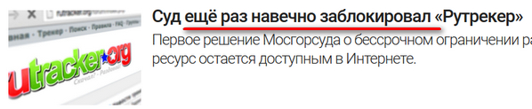 P.S. Через год: "Сегодня в двухсотый раз суд еще раз навечно и навсегда заблокировал "Рутрекер", во веки веков, аминь".