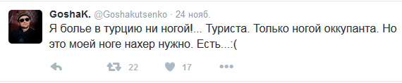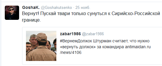 Из реального твиттера актера Гоши Куценко. Насчет Сирийского-Российской границы - особенно трогательно.