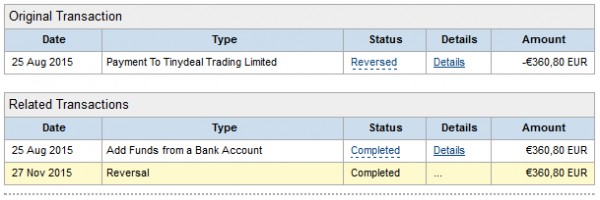 Мне все это дело быстро надоело, а так как я оплачивал покупку через PayPal (очень правильное решение, как впоследствии выяснилось), то решил вернуть деньги через PayPal.