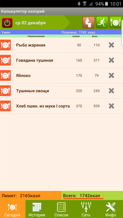 Считаем калории (округляя до 10 граммов) - получается 1742 калории. Так что в статье идет прогон в два раза. Однако 1742 калории - это на тысячу калорий меньше, чем должен получать взрослый человек. То есть при таком питании удержать свой вес - невозможно. Придется скушать Игорька.