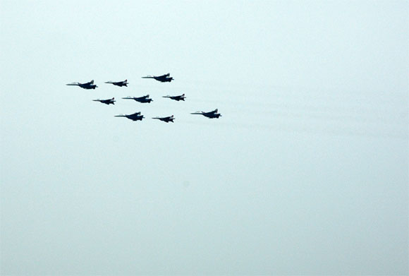 Как хорошо, что летчики отрабатывают фигуры высшего пилотажа под Москвой. Можно прямо из окна наслаждаться. И на парад теперь можно не ходить...