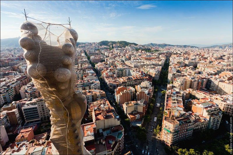 Руфер Виталий Раскалов залез на самую верхушку Храма Святого Семейства в Барселоне и сделал уникальные кадры. Ссылка ведет на Facebook, перепечатываю здесь для тех, у кого нет регистрации.